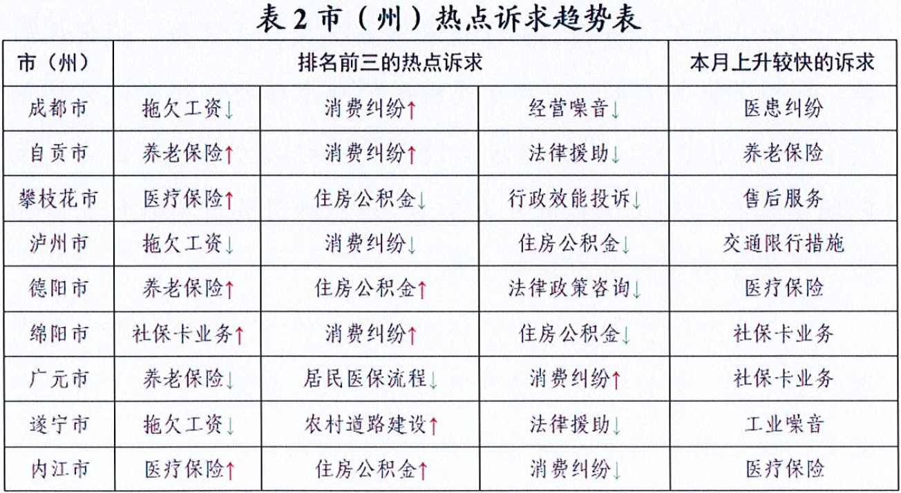 备注:↑表示本月诉求量相对上月诉求量上升,↓表示本月诉求量相对上月诉求量下降