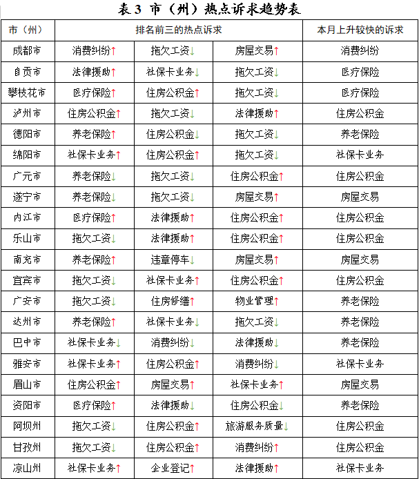 备注:↑表示本月诉求量相对上月诉求量上升,↓表示本月诉求量相对上月诉求量下降