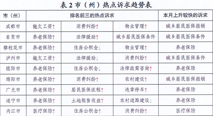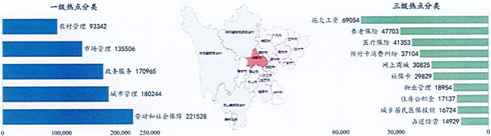 方面。涉及咨询社保医保业务、养老保险、拖欠工资、四川政务网办事、消费纠纷、企业登记、营商环境、证照管理、物业管理、噪音扰民、商品房质量、高速公路拥堵等问题(见图1)。