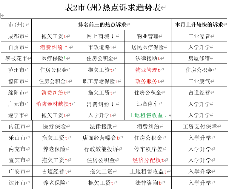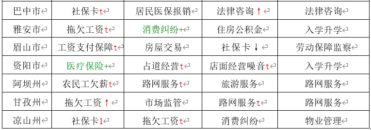 备注:↑表示本月诉求量相对上月诉求量上升,↓表示本月诉求量相对上月诉求量下降