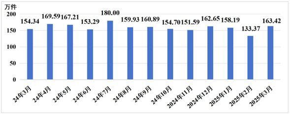 2-3月,全省12345热线共受理企业群众诉求296.79万件,办结284.79万件,办理中12.00万件,超期率0.01%。见图1。
