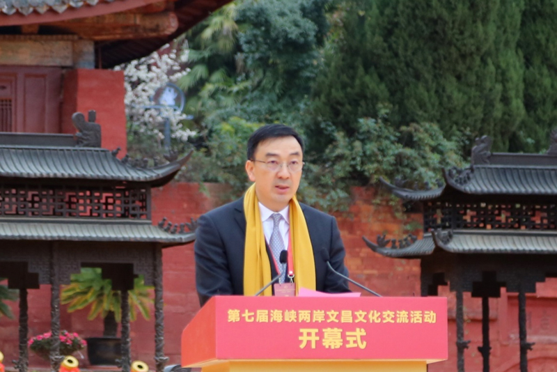 3月2日,第七届海峡两岸文昌文化交流活动在四川省绵阳市梓潼县七曲山风景区盛大开幕。四川省政协常委、港澳台侨和外事委员会主任钟家霖,省政协委员、港澳台侨和外事委员会副主任罗治平,四川省人民政府台湾事务办公室副主任刘浩,绵阳市委常委李南希,绵阳市人民政府副市长黄波,东莞台商子弟学校董事长叶宏灯,南开大学台湾政治研究中心主任黄清贤,以及四川省、绵阳市、梓潼县有关部门负责人,两岸文化专家学者、文昌宫观代表、台商代表、两岸师生等200余人参加活动。