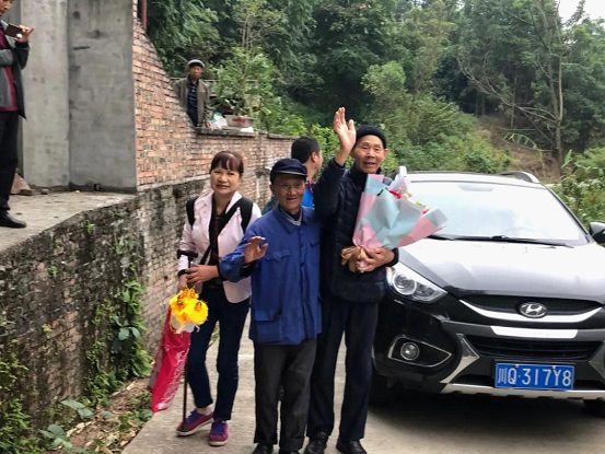 车刚停下,家人们就热情地围拢过来,迫切地想要见到“幺舅”、“幺爹”、“幺爷”……刘少清老人更是激动不已,盼了75年,终于踏上家乡的土地。