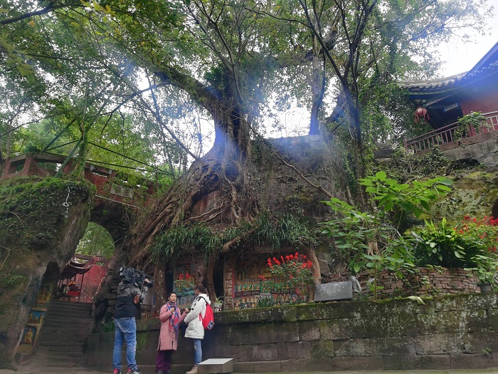 拍摄乐至报国寺:树抱佛