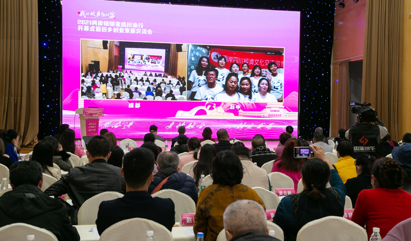 10月21日,“我的故乡你的家”2021两岸婚姻家庭川渝行开幕式暨回乡创业发展交流会在四川成都举行。活动以“感恩奋进亲情融合创业发展”为主题,由四川省台办、重庆市台办和四川省妇联、重庆市妇联联合主办,川渝两地近70位两岸婚姻家庭代表、四川优秀创业女性代表以及省级相关部门和各市(州)台办相关负责人共同见证活动开幕。受新冠疫情影响,许多没能返乡参加活动的岛内川渝籍陆配相聚台湾台中和嘉义两地,也以视讯连线方式全程参与交流互动。