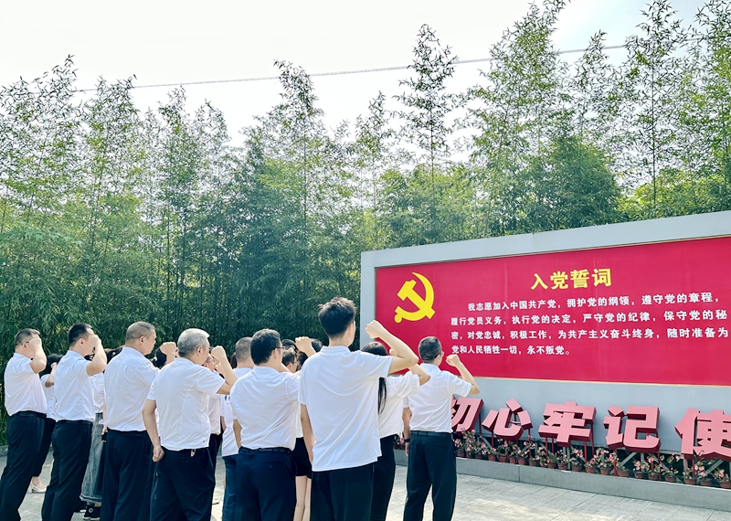 在革命烈士纪念碑前,全体党员举起右拳,重温入党誓词,时刻牢记共产党人的使命与担当。