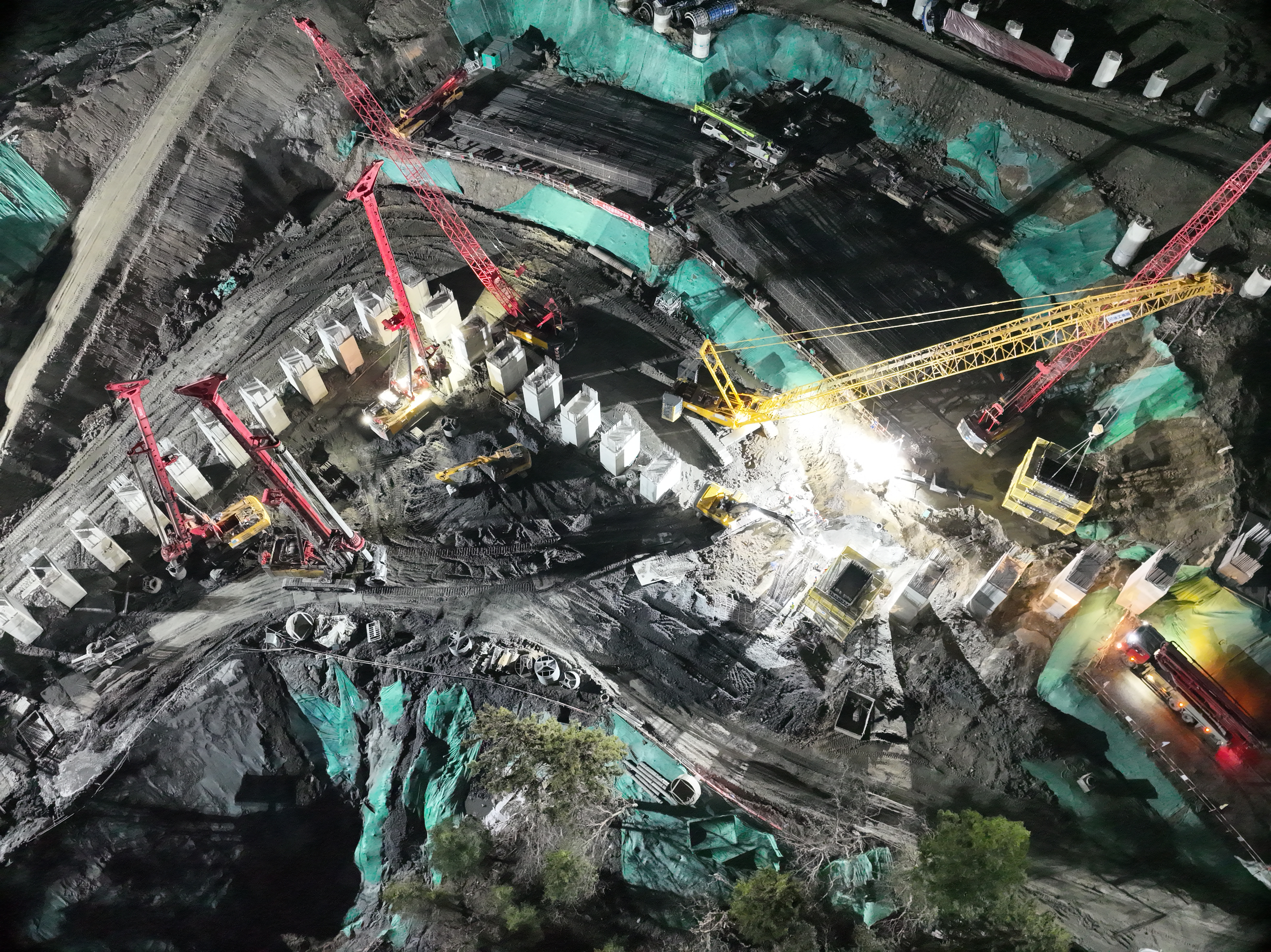 面对58米高填方边坡支护、岩体风化破碎、地下水丰富等多重严峻挑战,项目团队动态优化施工方案:2025年4月启动“冲刺攻坚”,投入109名作业人员、19台大型设备,通过24小时轮班、优化施工工艺,创下单月成方桩26根的施工纪录。