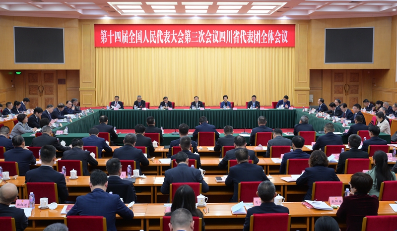 3月3日下午,在北京出席十四届全国人大三次会议的四川代表团在驻地举行全体会议。省委书记、省人大常委会主任王晓晖主持会议并讲话。