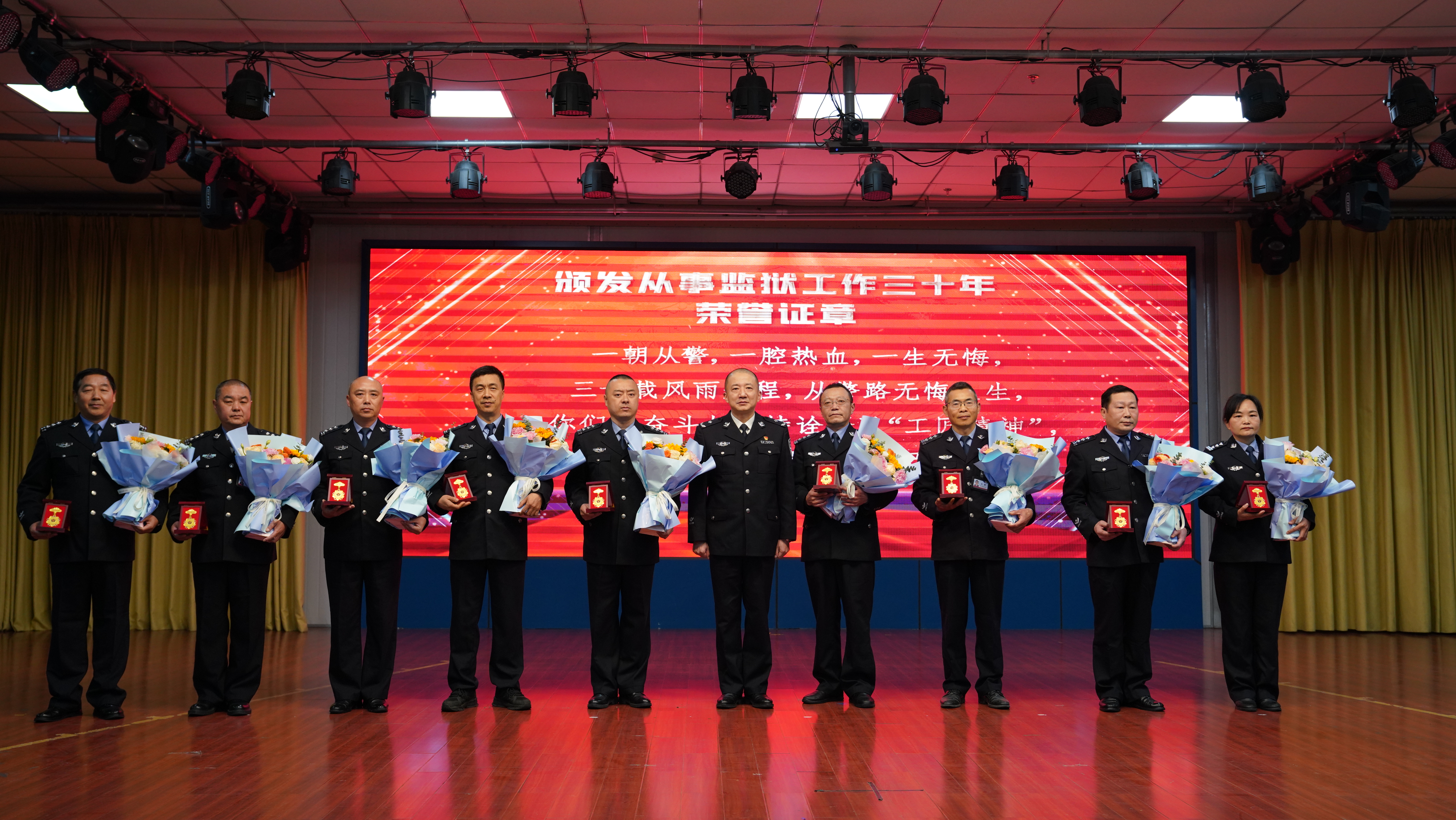 三十载风雨兼程,三十载矢志不渝,三十载恪尽职守。每一枚徽标都凝聚着你们三十年的努力与付出,闪耀着对监狱事业的执着与热爱。