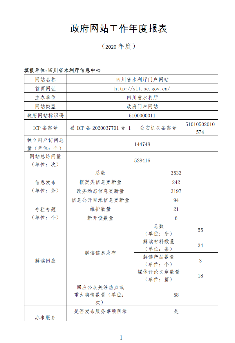 四川省水利厅门户网站2020年度政府网站工作年度报表