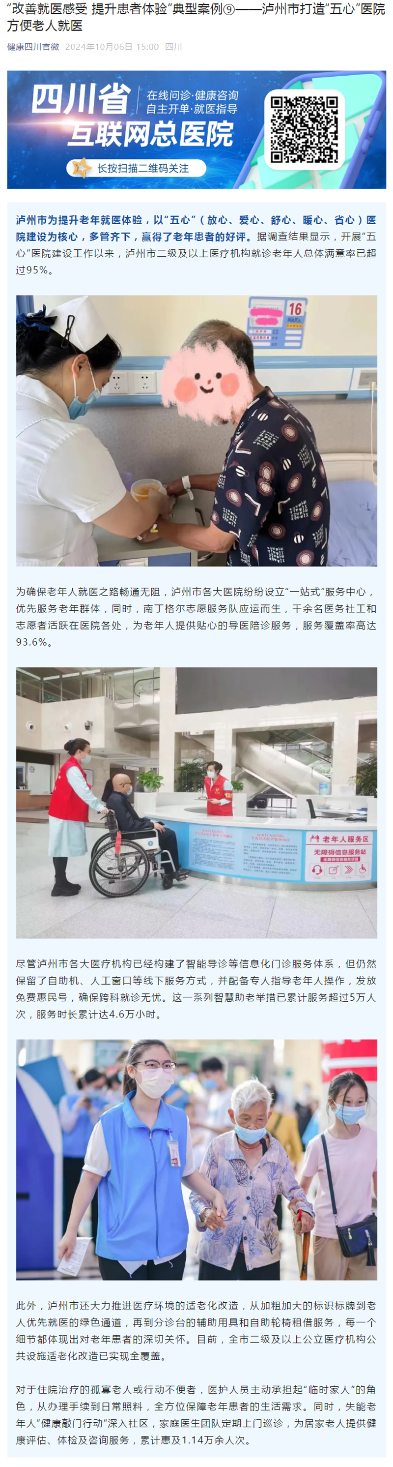 “改善就医感受 提升患者体验”典型案例⑨——泸州市打造“五心”医院 方便老人就医