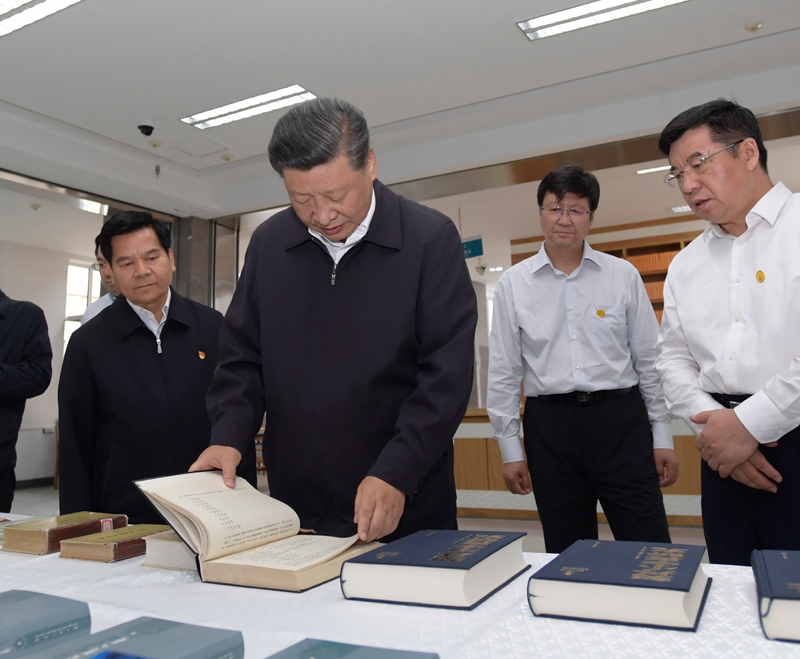 16日上午,习近平在呼和浩特市考察,首先来到内蒙古大学。作为我们党在民族地区创办的第一所综合性大学,为民族地区人才培养和经济社会发展作出了贡献。在图书馆,习近平听取学校建设发展、教学科研、人才培养、思想政治建设等工作情况介绍,察看蒙古语言文学历史成果图书展示。蒙古文古籍展阅室收藏了众多历史文化典籍,记载了蒙古族文化与其他民族文化融合发展的历史。习近平认真听讲解,不时驻足端详。习近平强调,要加强对蒙古文古籍的搜集、整理、保护,挖掘弘扬蕴含其中的民族团结进步思想内涵,激励各族人民共同团结奋斗、共同繁荣发展。
