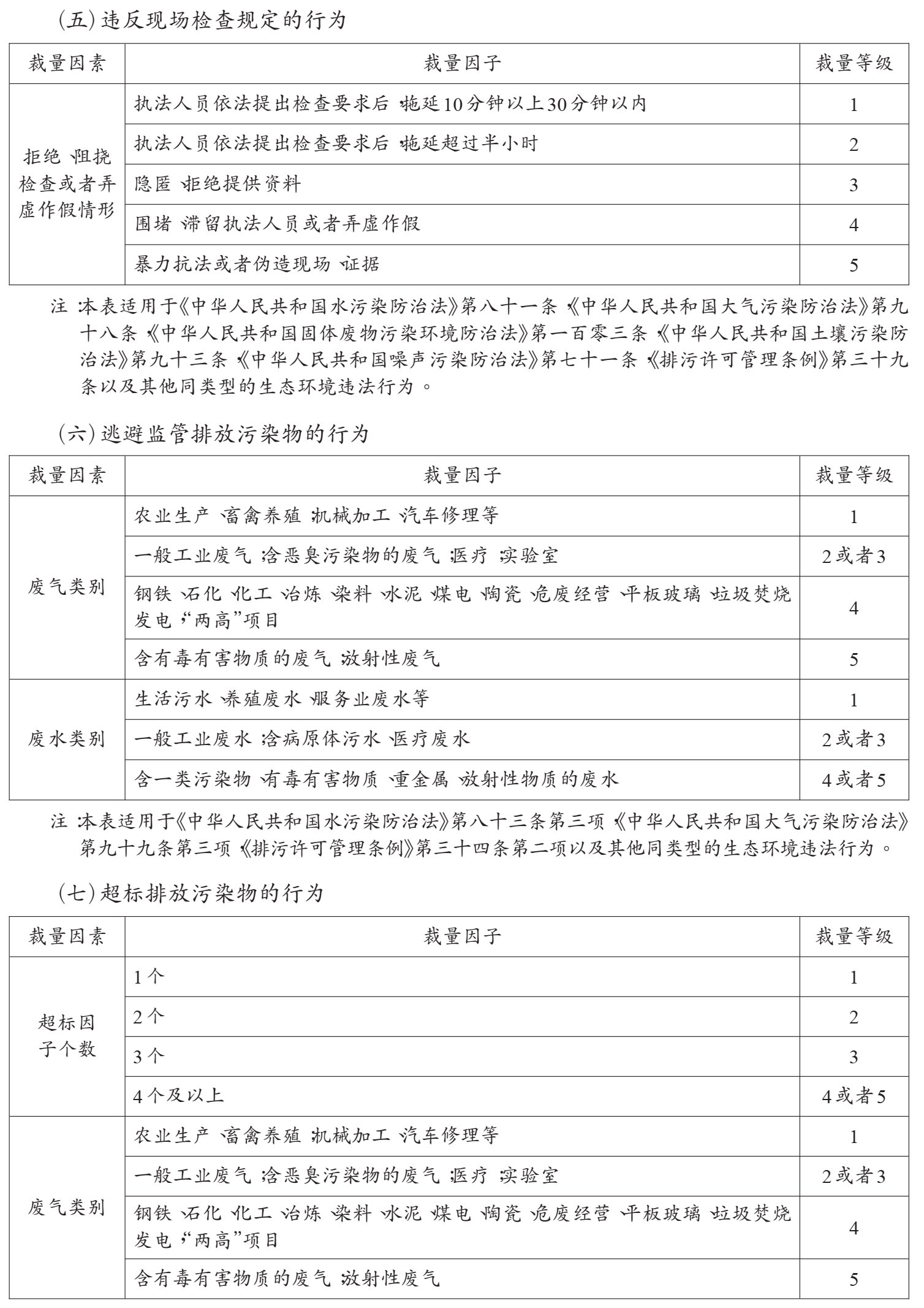 污染物超标倍数(重行为吸收轻行为):3倍以上不足5倍(裁量等级3)