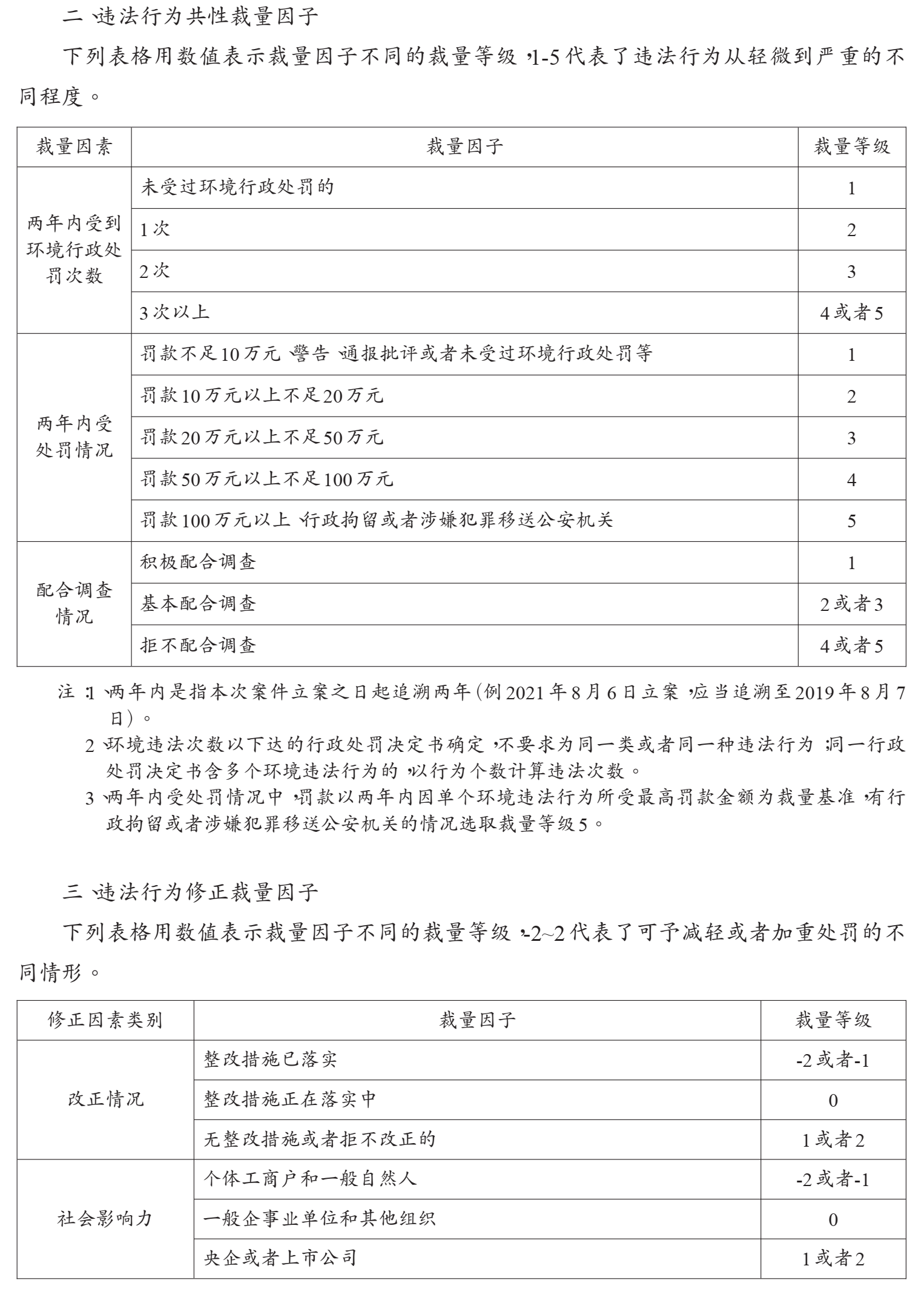 (一)违法行为所造成的环境污染、生态破坏及社会影响程度;