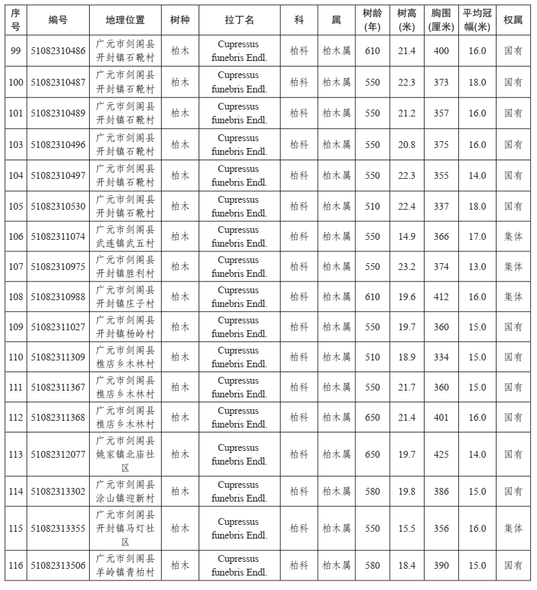 附件:四川省2021年新增一级古树和名木名录