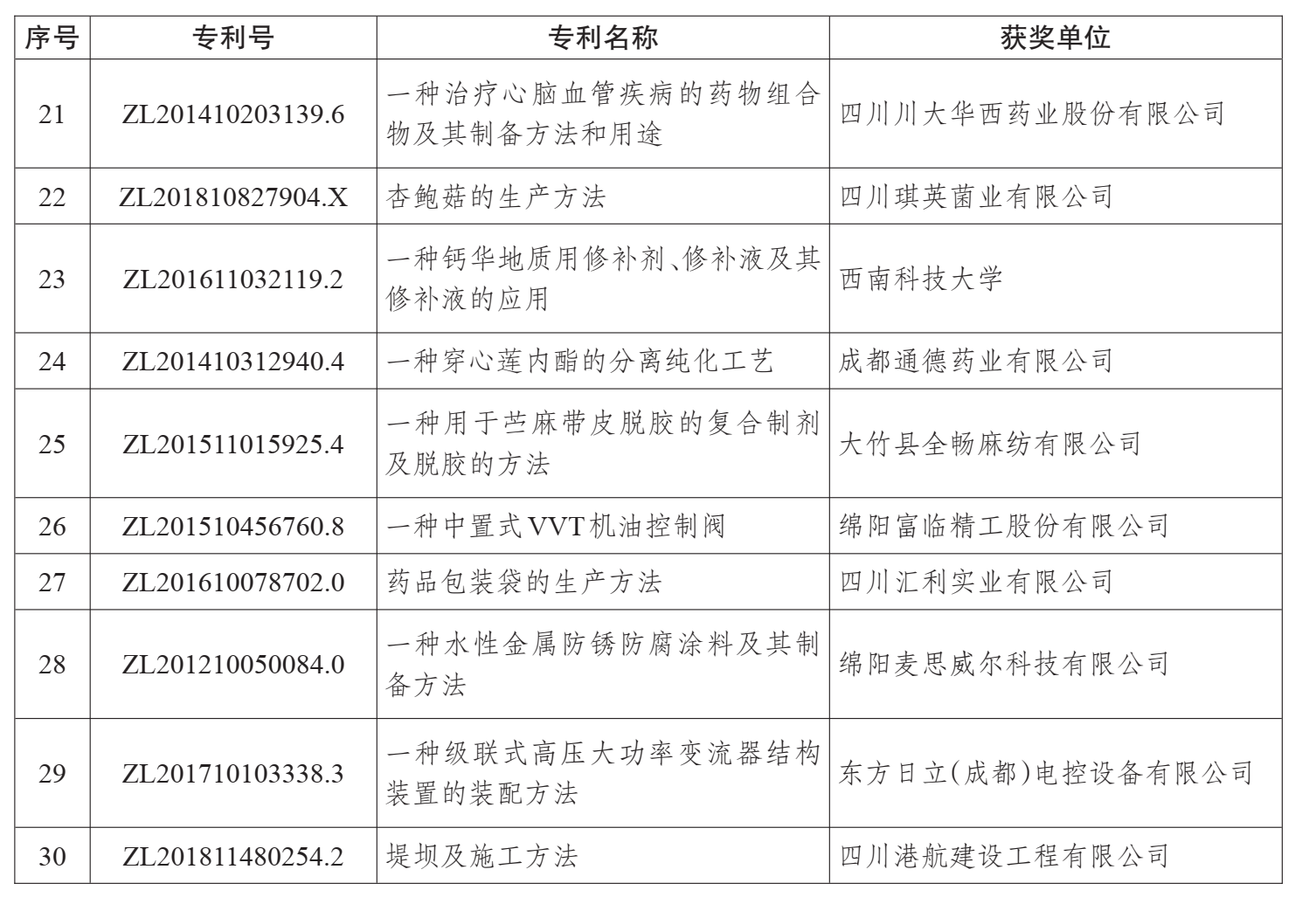 附件:2021年度四川专利奖获奖专利项目名单(66项)