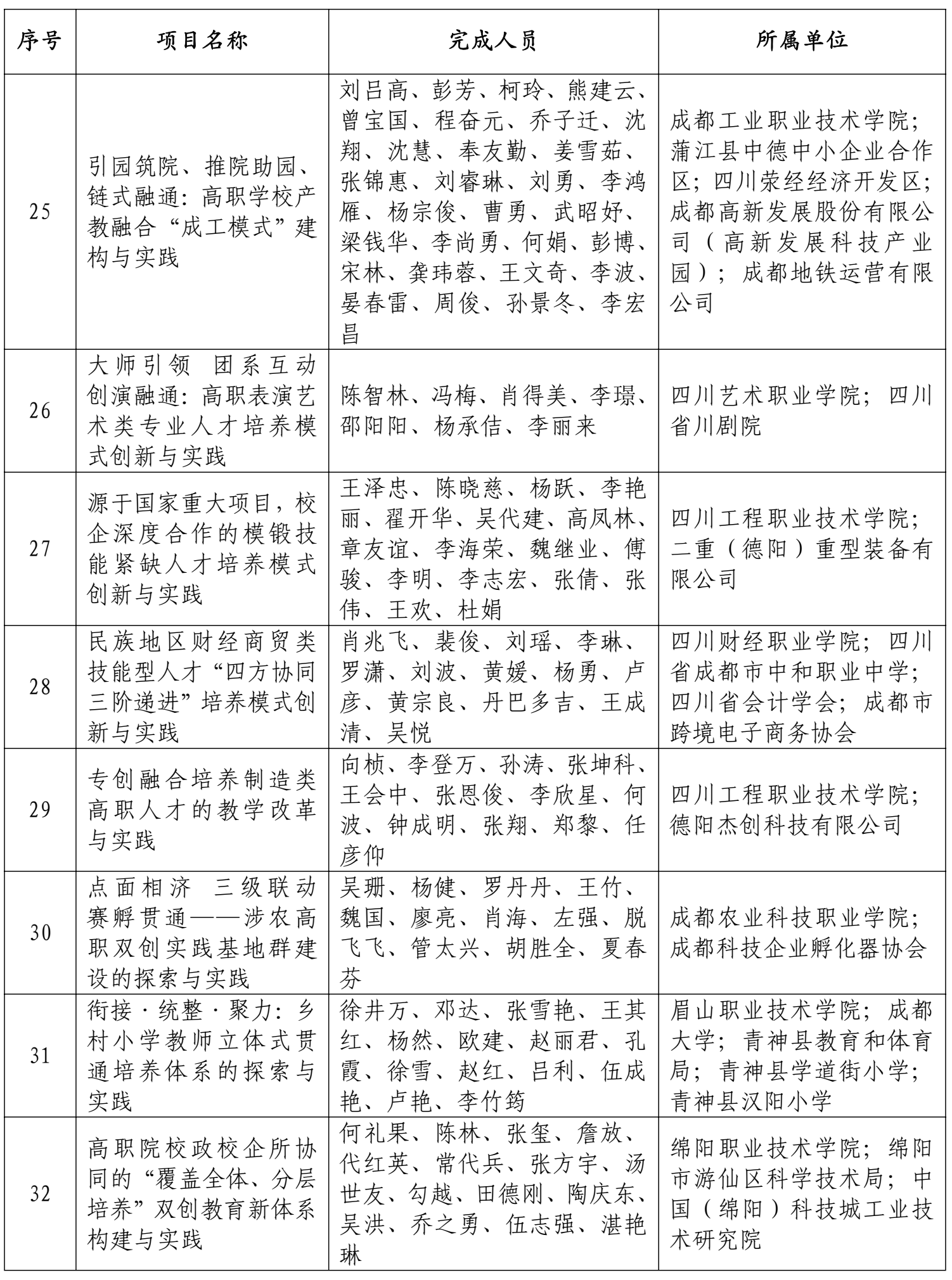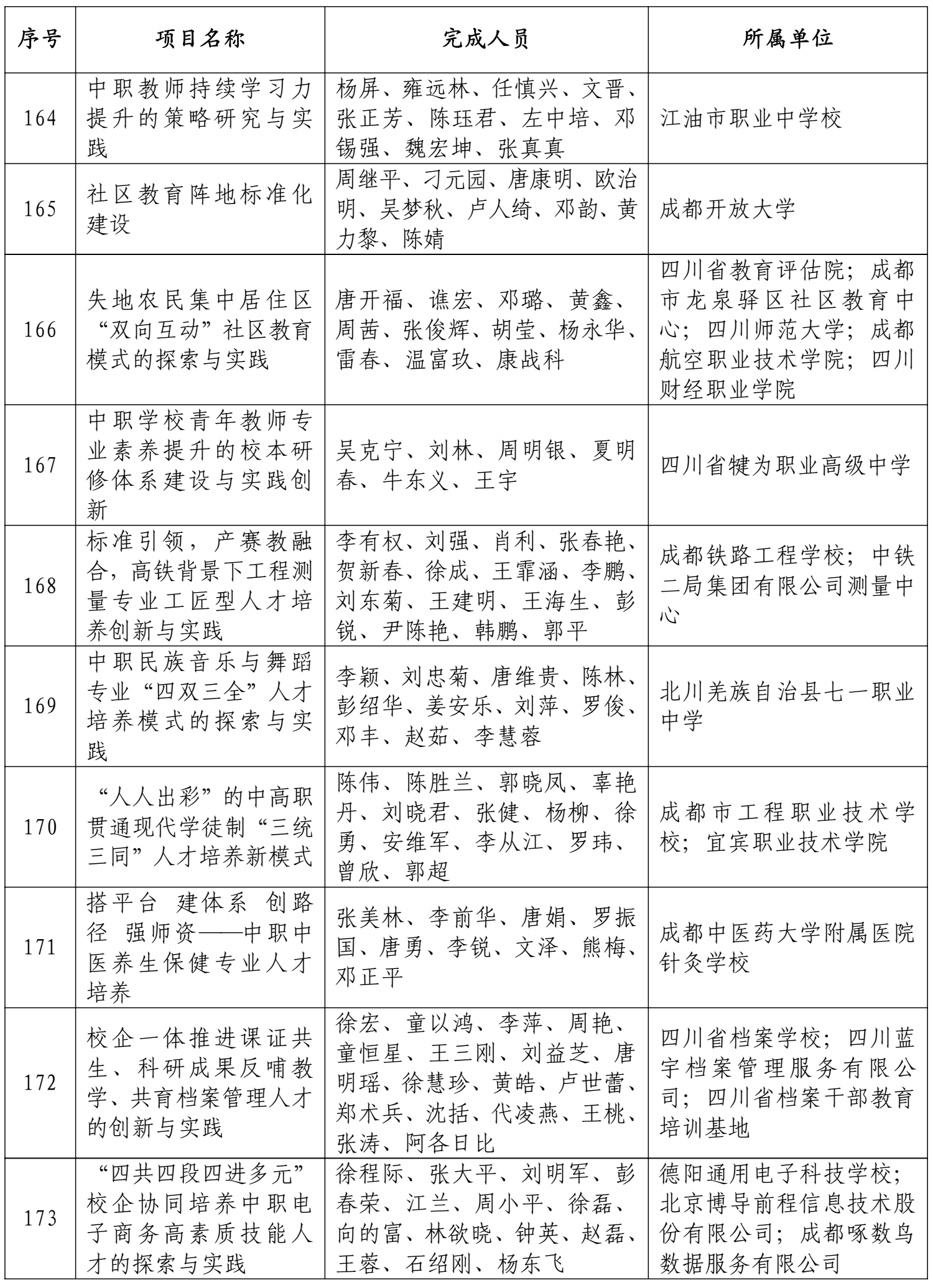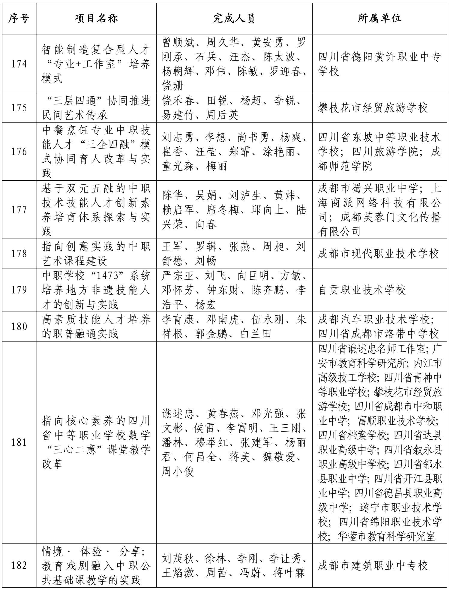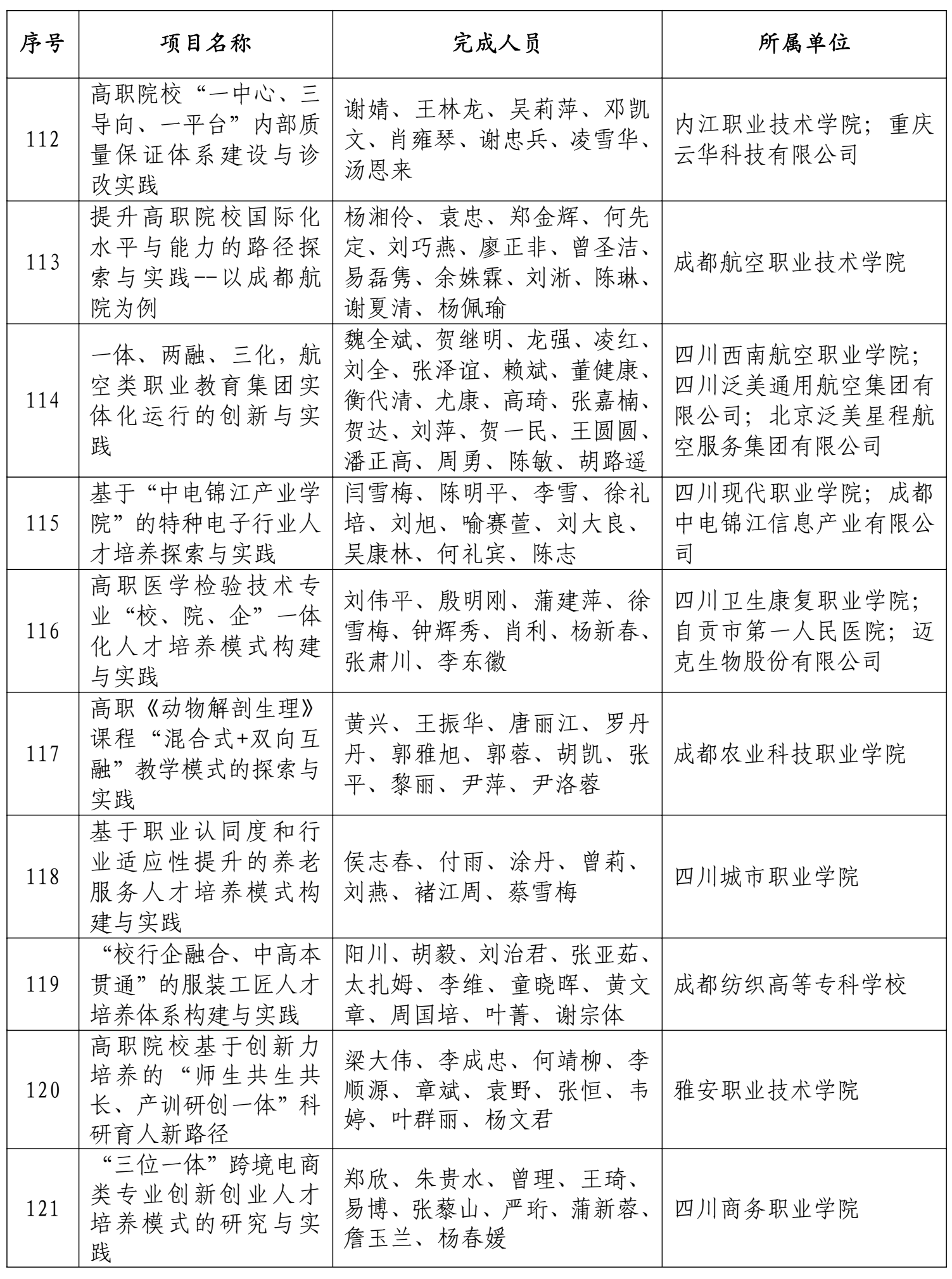 为激励取得教学成果的集体及个人,鼓励教育工作者从事教育教学研究,不断提高教学水平和教育质量,根据《教学成果奖励条例》(中华人民共和国国务院令第151号)和《四川省教学成果奖励办法》(四川省人民政府令第92号)规定,经专家评审、社会公示等规定程序,在基础教育、职业教育、高等教育3个领域共评选出特等奖60项、一等奖260项、二等奖680项。现将获奖名单予以公布。
