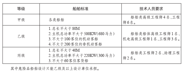 2.企业技术负责人(或总工程师)必须具有船舶工程专业高级职称,并具有6年及以上的设计经历。