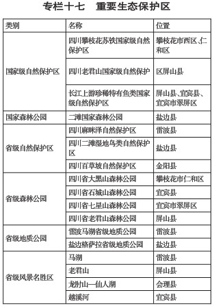金沙江下游地区拥有丰富的水能、矿产资源,同时又是生物、旅游资源高度富集区和长江上游生态屏障重点区。规划区位于川滇黔结合部,区位条件独特,连接我省攀西经济区和川南经济区,与周边的云南、贵州经济联系紧密,属于攀西—六盘水能源资源富集区的重要组成部分,是我省南向开放的前沿。该区域处于云贵高原与四川西部高山高原区过渡带,属高山峡谷和干热河谷区,山地面积比重大,地形地貌复杂,海拔垂直差异悬殊,立体气候特征明显。区内水系发达,水能蕴藏量巨大,仅金沙江干流在建和拟建的乌东德、白鹤滩、溪洛渡、向家坝等大型电站装机总容量就达到4130万千瓦。矿产资源高度富集,钒钛资源在全国乃至世界都具有较大影响力,攀西地区已探明钒钛磁铁矿储量超过70亿吨,钒储量居全国第一、世界第三位,钛储量居世界第一位,同时还有丰富的铅、锌、铜、磷等矿产资源。光热资源非常丰富,冬春逆温效应显著,日照充足,昼夜温差大,农作物具有反时令生长、热带作物品质较高等特点。生物资源种类繁多,烤烟、蚕茧、石榴、柑桔、苦荞、黑山羊等农畜产品特色突出,是国家“东桑西移”重要基地和四川重要草食畜禽生产基地。旅游资源绚丽多彩,马湖、龙肘山—仙人湖、红格温泉、金沙江峡谷等自然风光秀美,大型电站建成后形成的高峡平湖,将成为世界独具特色的湖光山色景观。