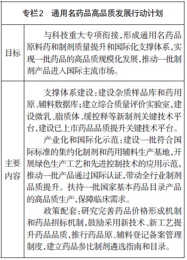 2.推动化学药物品质全面提升。围绕心脑血管疾病、代谢性疾病、恶性肿瘤、免疫性疾病、感染性疾病、神经和精神性疾病等重大疾病的防治需求,加速化学创新药物的产业化,高品质开发通用名药品,开展基本药物临床使用综合评价。重点推进缓释、靶向、长效等新型制剂研发和关键工艺技术产业化,鼓励新型辅料的研发和应用,推广应用先进的生产管理规范,提高我国制剂产品的市场竞争力,推动制剂产品进入国际主流市场。推进绿色制造和过程控制等新技术的应用,减少环境污染,提高产品质量,降低生产成本,强化我国原料药在国际市场的优势地位。提高产业集中度,完善国际认证服务体系,完善特色化合物库、测试和评价共享平台等创新支撑体系。