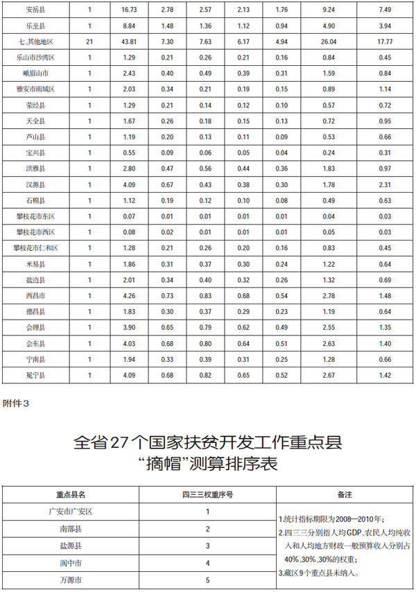 3.全省27个国家扶贫开发工作重点县“摘帽”测算排序表