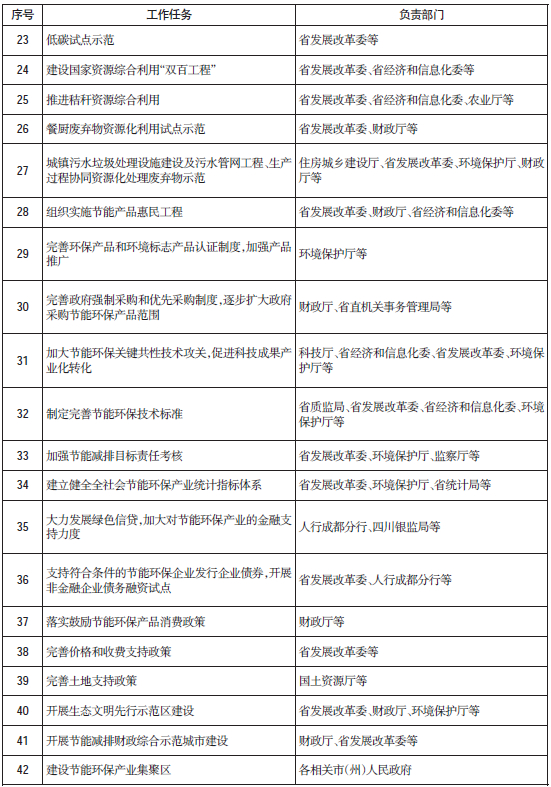 (一)加大节能环保关键共性技术攻关。加快推进四川联合环保装备、四川钒钛、四川宏石油气等重点产业技术研究院建设,推进工程技术(研究)中心、重点实验室、产学研技术创新联盟等技术创新平台建设。支持节能环保关键共性技术攻关,重点在新型污水垃圾处理技术装备、污染土壤修复技术、环境监测仪器设备、能源高效梯级利用、污染物防治和安全处置、资源综合循环利用等方面攻克30—50项关键技术。