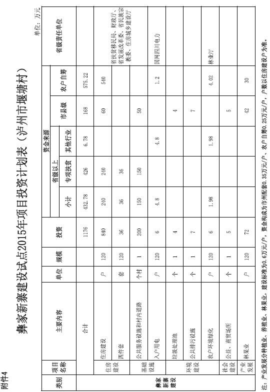 4.彝家新寨建设试点2015年项目投资计划表(泸州市堰塘村)