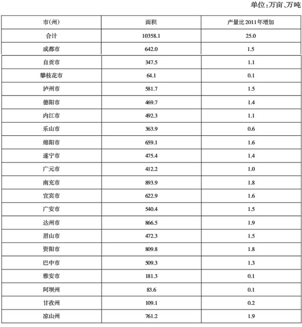 附件:2012年各市(州)粮食面积产量任务分解表