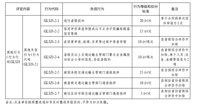 二、从业单位发生上述所列投标失信行为、并经交通运输主管部门查实的,将给予扣分记录。对于第1至3项的失信行为,发生一次扣10分;对于第4至6项的失信行为,发生一次扣20分;第7项的失信行为,由信用审定单位确定扣分值。
