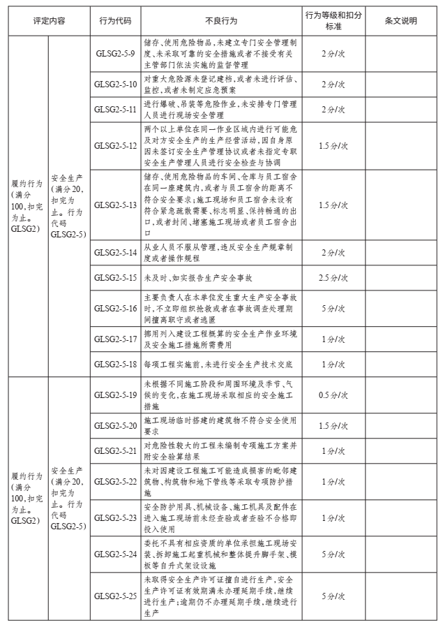信用评价履约行为扣分标准养护工程施工